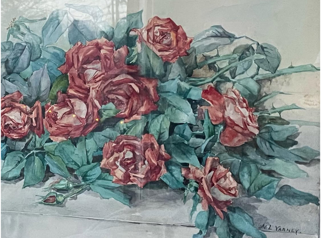 Antique Watercolor Roses in Antique Gold Leaf Frame!